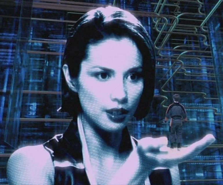 Gerentex brings Harper back to the Eureka Maru where he wants him to hack into the Andromeda 's mainframe computer and take it over. What Gerentex doesn't know is that Harper plans on taking it over not for Gerentex's benefit, but for this own. He plugs a conduit into a receptacle implant in his neck and downloads his consciousness into the ship. What Harper soon comes to realize however is that Andromeda is more than just a standard starship - it is alive. The ship's avatar is a highly advanced artificial intelligence nicknamed Rommie. Rommie's image appears before Harper larger than life, and voices her displeasure at this intrusion. She tells him to "go home" and ejects him from her systems.